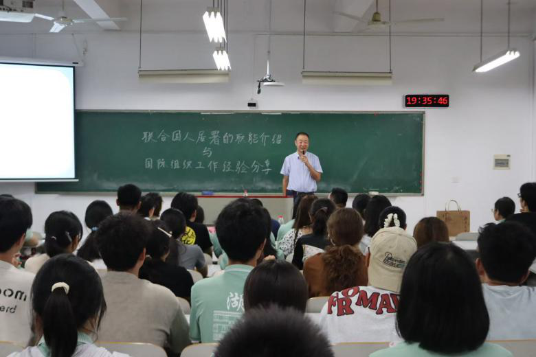 分享过程中,张振山先生围绕多方面内容展开详细讲解,具体涵盖联合国人居署的主要机构及核心职能、联合国人居署中国项目,以及SUPP、PO-UPS、CFCC、SWM等专项工作;同时,他还介绍了联合国人居署开展的青年创新活动、相关案例研究和报告成果、会议方面的工作情况,以及国际组织实习生招募与就业要求,为在场师生呈现了系统性知识内容。
