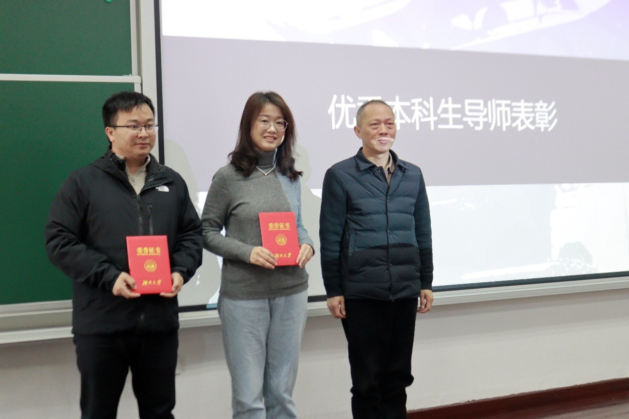 对优秀本科生导师——陈坤秋、周蔚两位老师进行表彰,由自慰喷水党委书记宋杰老师颁发荣誉证书。作为优秀导师代表,陈坤秋老师寄语学生“用心体悟美好”,培养兴趣爱好,遇见美好、收获美好、成就美好;周蔚老师则鼓励学生不惧困难挑战,主动与世界建立联结。