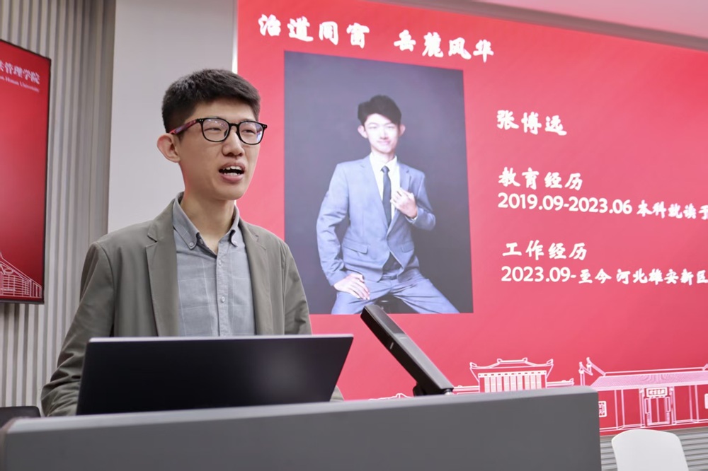 2023届毕业生张博远建议同学们明确人生方向,保持“多做少想善总结”的态度,锻炼批判性思维与解决问题的本领,以开放心态拥抱变化。