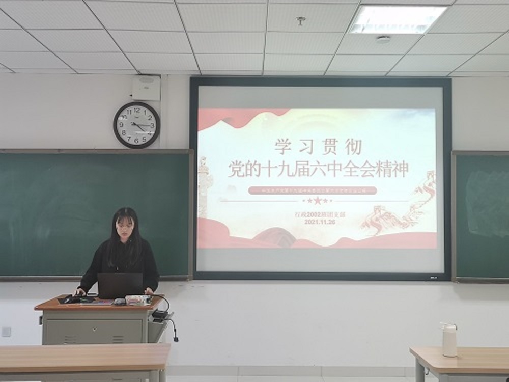 通过此次会议,行管2002班的同学们认识到:十九届六中全会是在当今世界正经历百年未有之大变局、我国正处于“两个一百年”奋斗目标的历史交汇点上;作为新时代大学生,我们应继续努力,做好立德树人的本职工作,为早日实现中华民族伟大复兴添砖加瓦。