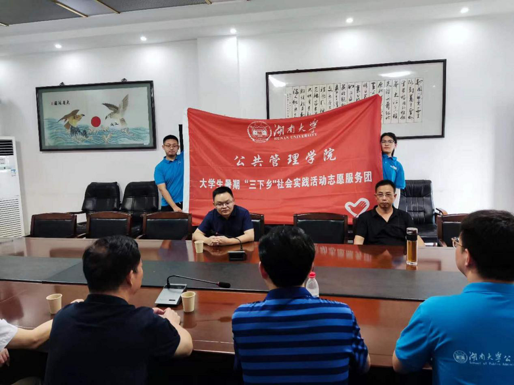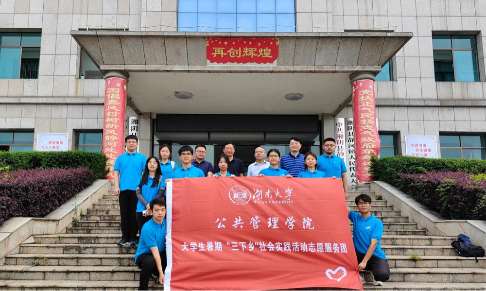在岳阳市湘阴县静河镇开启暑期“三下乡”实践调研活动。本次活动以“公共治理入静河,乡村振兴迎新风”为活动主题,组建了一支共13人的实践团队,由院长李连友教授、院校友会会长李金龙教授和院党委副书记杜倩博副教授进行指导,是自慰喷水结合社会资源开展实践育人并运用公共治理知识助力乡村振兴的重要活动形式。