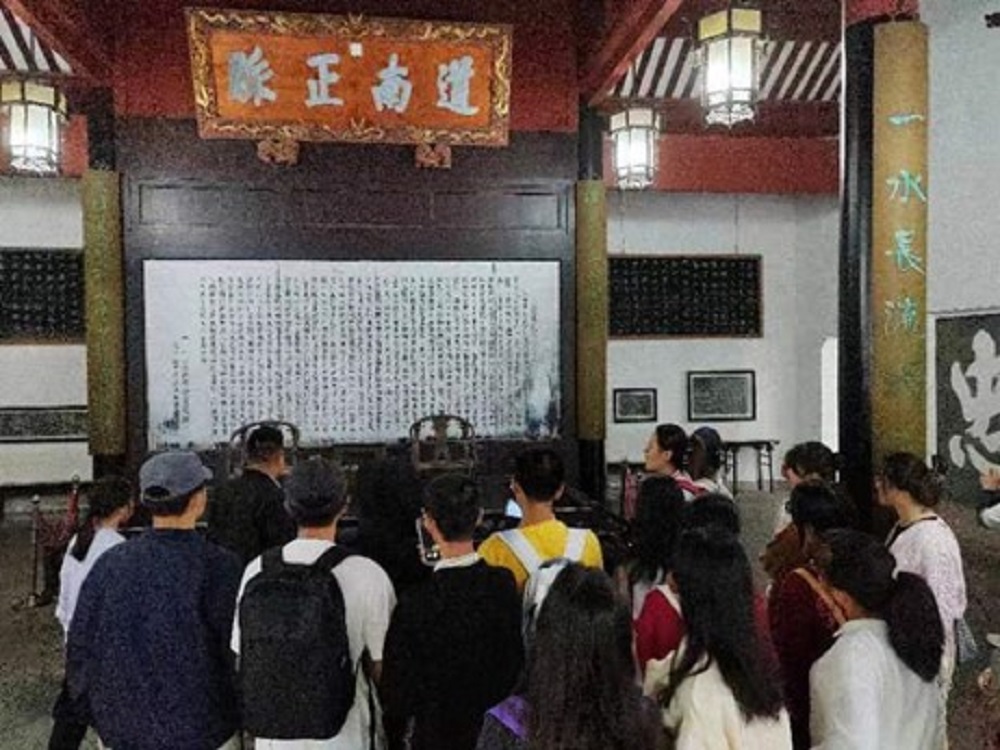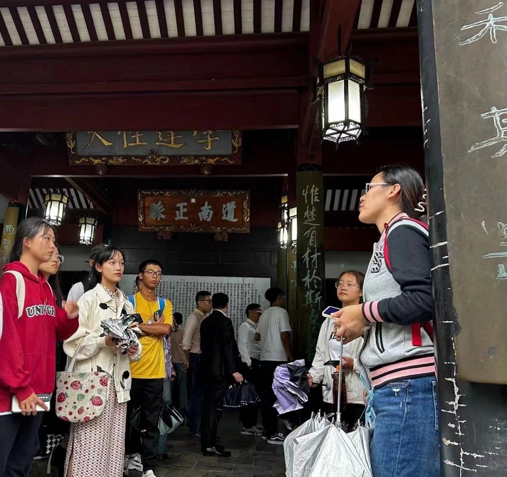 岳麓讲团成员的悉心讲解下,大家认真聆听,用心感受这所千年学府的魅力。