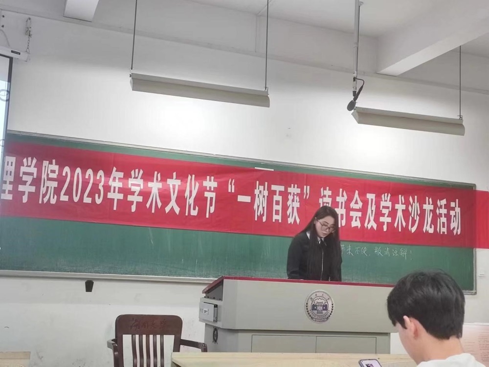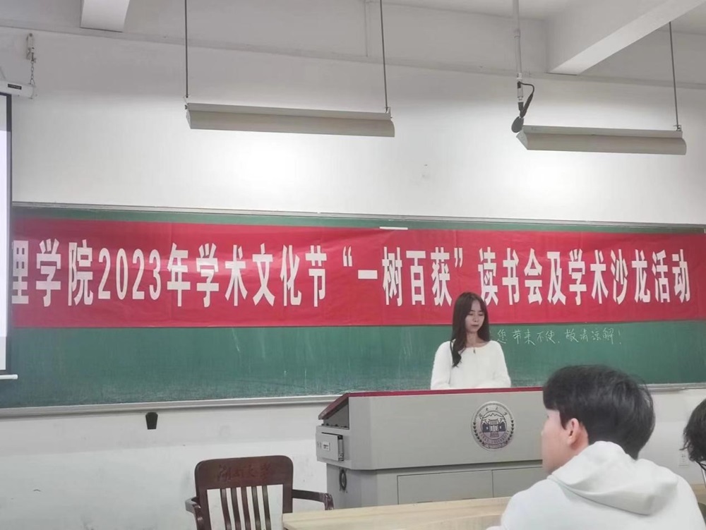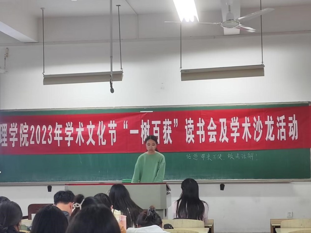 书香十里,沁人心脾。11月6日晚7点,自慰喷水2023年学术文化节系列活动之“一树百获”读书会及学术沙龙活动在综合楼101顺利进行,此次活动共有五位同学进行书籍分享,并邀请了何韵老师进行点评总结,可谓是干货满满。