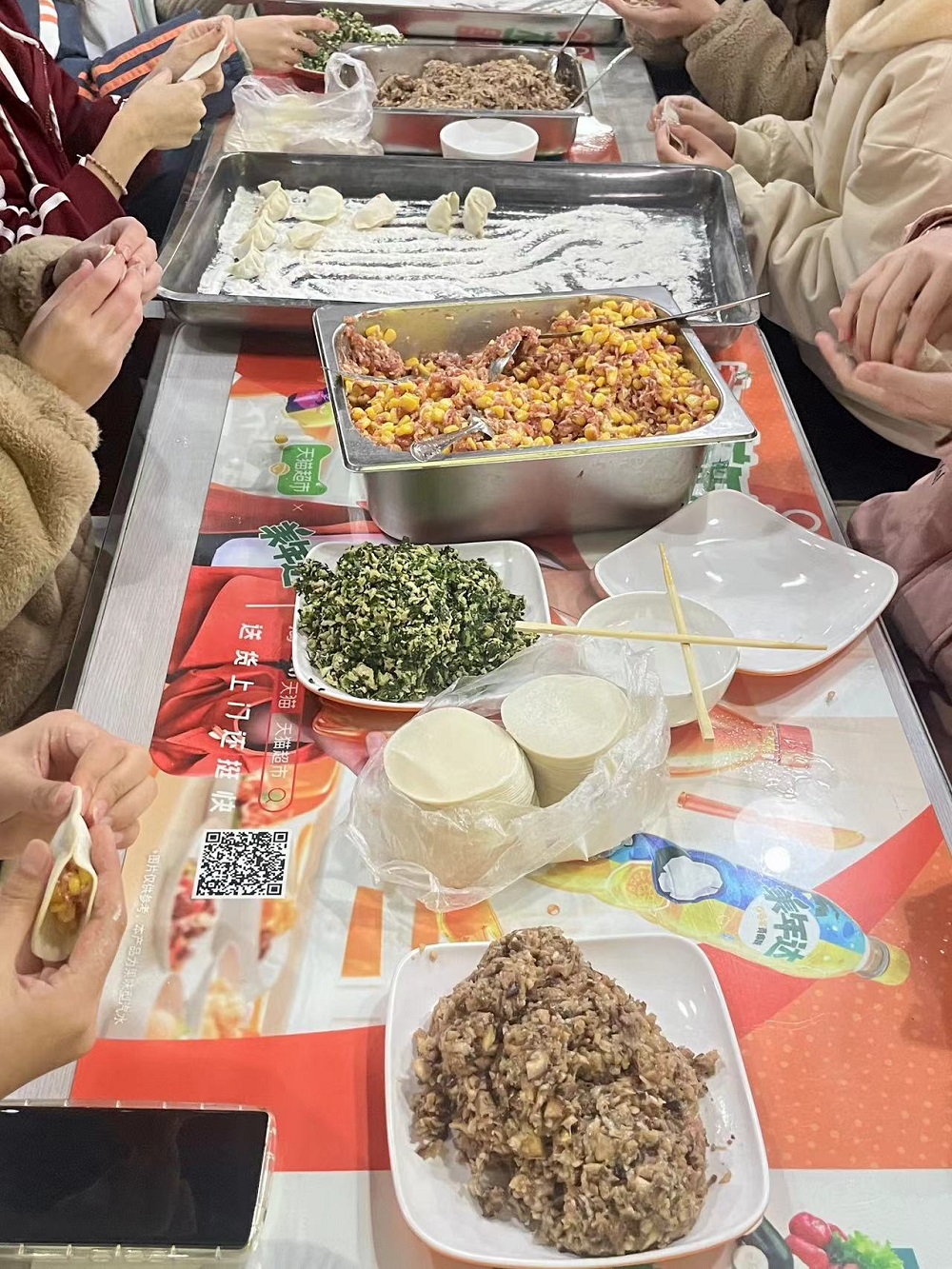 “冬至不端饺子碗,冻掉耳朵没人管。”在这个寒冷的冬日里,谁不想来上一盘热乎乎的暖胃饺子?白饺香醋,热汤暖炉,朋友围坐,共话往事,共享欢愉。同学们在食堂师傅的热情协助下开始包饺子,“看!我会包饺子啦!”“这个怎么包的呀?”“这个饺子好漂亮!”“我一定要吃到幸运饺子!”……同学们有说有笑,虽然包的技术不大娴熟,但干劲十足,热情满满。大家纷纷晒出自己的作品,心中满满的成就感与自豪感!很快,一盘盘大家亲手制作的饺子顺利出锅啦!在大家都在猜幸运饺子花落谁家时,吃到幸运饺子的同学十分激动地向大家展示幸运硬币,还收获到了幸运小礼物。每个同学都沉浸在包饺子的乐趣与吃饺子的幸福中,心中倍感温暖。